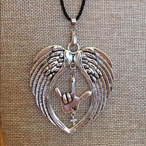 Beautiful Silver wings with "ILY" hand