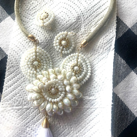 Pearl. Like necklace. With crystal. Rhinestone with extender never been worn