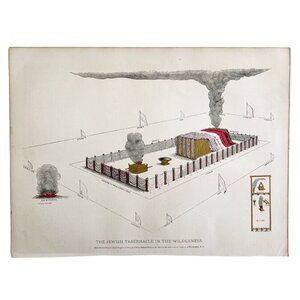 Jewish Tabernacle Wilderness Colored Engraving Gold 1872 Victorian Art DWAA6