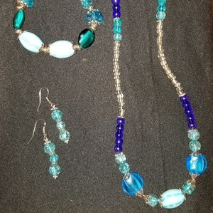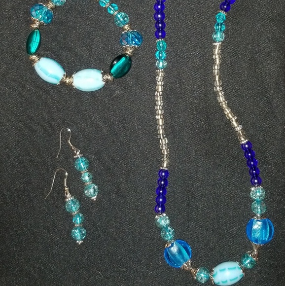 This is a necklace, bracelet, earrings set. Glass beads very durable. Made by me LJ's jewlery. Comes wrapped in a bag and in a decorative box.