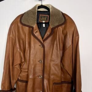 Jez Creations Montreal 8 Tan Camel Sherpa Leather Button Front Jacket Vintage
