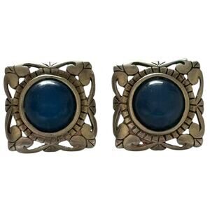 Elevate your style with these vintage Jezlaine square post stud earrings. The blue chalcedony stone adds a pop of color to any outfit, while the sterling silver metal ensures durability. These earrings are perfect for those who appreciate fine jewelry and want to add a unique piece to their collection.