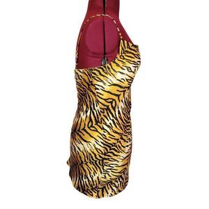 Fun animal print pattern, scoop neckline, spaghetti straps, sleeveless, mini, bodycon, pull-on, slip on side, lightweight and super comfy. NWT