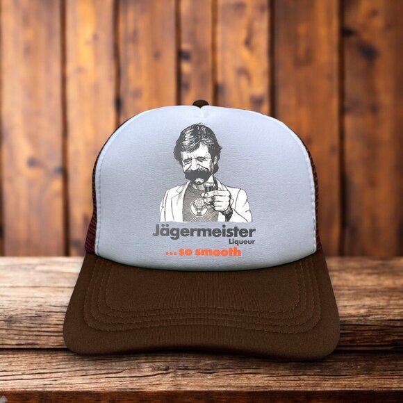 Jägermeister Mens Trucker Hat Brown Snapback Liqueur Retro 80s Logo Ball Cap