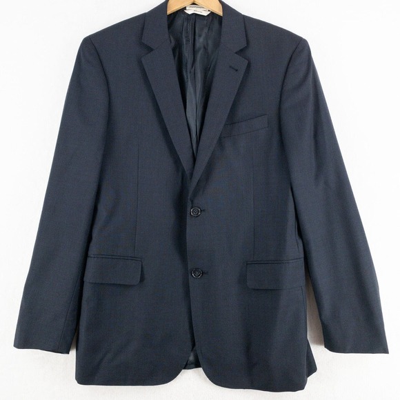 Jhane Barnes Blazer Mens 40R Blue 100% Wool Two Button
