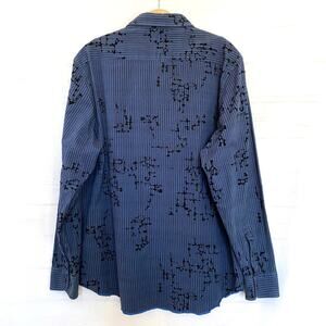 Jhane Barnes Burnout Velvet Dress Shirt Men XXL Navy Button Up Trim Fit Raw Hem