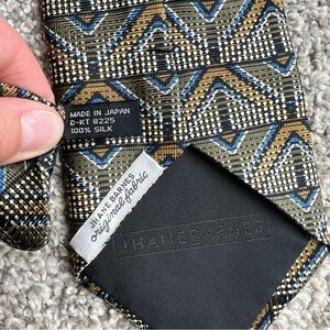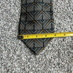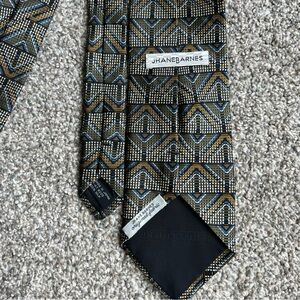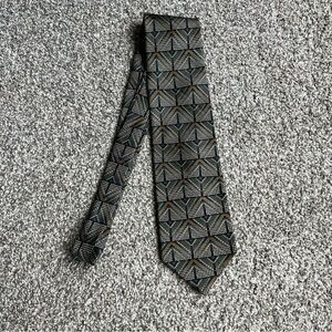 Jhane Barnes Geometric Olive/Blue 100% Silk Tie, 57”