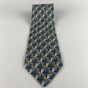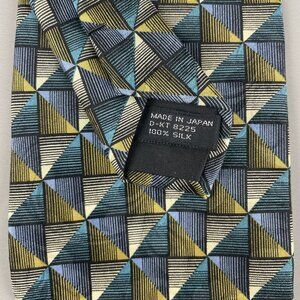 Jhane Barnes Geometric Silk Tie Blue & Gold Made in Japan