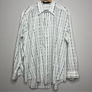 Jhane Barnes Men's Dress Shirt 16.5" / 33-34 White Ombre Gray Stripe Large