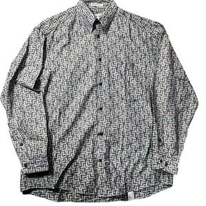 Jhane Barnes Mens Button Down Shirt M 15-1/2 Gray Brown Cotton Long Sleeve