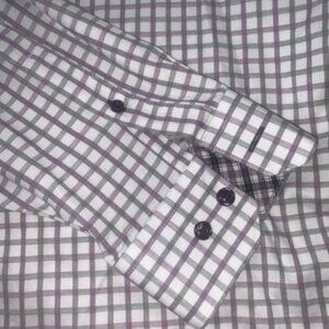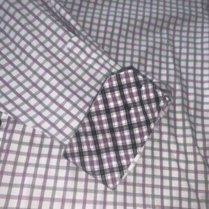 Jhane Barnes Mens Button Slim Fit XXL Purple Gray Plaid Shirt