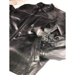 Jhane Barnes Men's Soft Black Leather Full Zip Jacket Coat