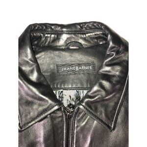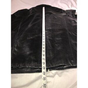 Stay stylish in cool weather with the Jhane Barnes Men's Soft Black Leather Full Zip Jacket Coat. Perfect for dates and vacations, this size 44 jacket is crafted from lambs leather, acetate, and polyester for a classy look.
