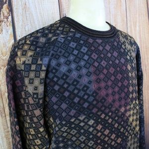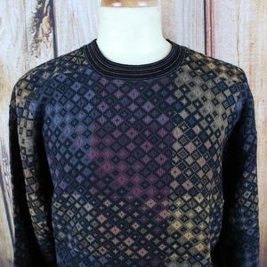VTG Jhane Barnes Men's Crewneck Sweater Medium Wool Blend Purple Gold Blue Abstract Geometric
