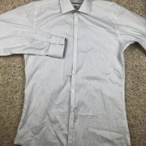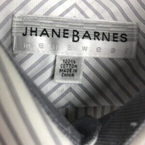 Jhane Barnes Mens White Striped Button Up Cotton Dress Shirt Size 15 32/33