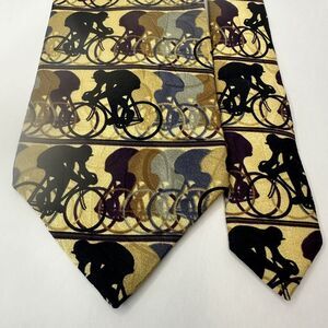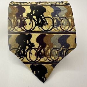 Jhane Barnes Original All Silk Gold w/Black/Blue/Gray Bicycle Design Japan