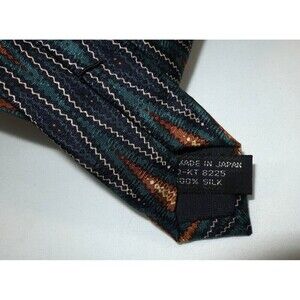 Jhane Barnes Silk Neck Tie Geometric Stripes Blue Teal Orange Made In Japan