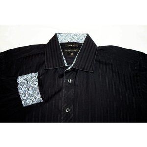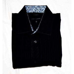 Jhane Barnes Slim Fit Men's Long Sleeve Button Front Striped Black Shirt Size Large. See pictures for condition.