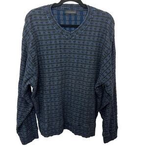 Jhane Barnes Textured Lightweight Sweater V-Neck Cotton | Men's XL