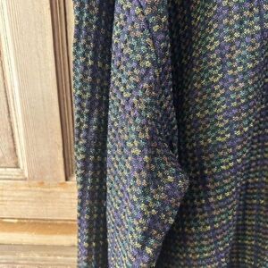 Features: Very nice heavier weight long sleeve blouse. Woven material with small textured square pattern all over. Higher crew neck.