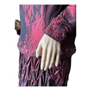 Jianini formal Burgundy Button Taffeta embellished formal maxi dress size 24