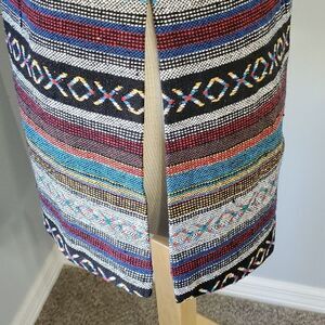 This beautiful jacket has no size tag, Pit to pit flat measurement is 19". sleeves are 16". Top to bottom length is 30". 11" slits on sides. Polyester and Rayon. Feels like silk. Consider making a bundle and get an even better offer.