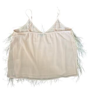 This is a super sexy pale blush pink tank from Jieru. The front is adorned with the softest feathers. This has adjustable straps for perfect size medium fit. Like new condition.