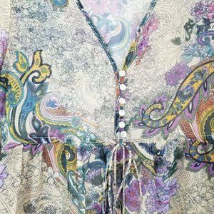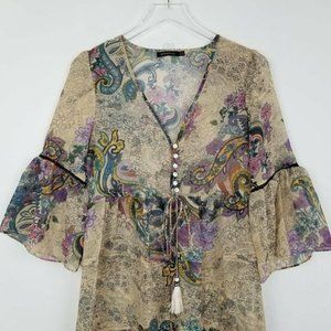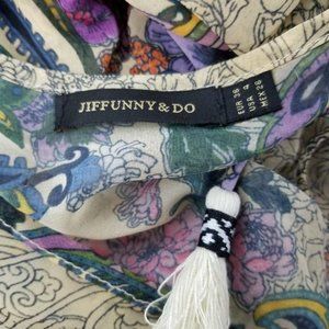 Jiffunny Do Womens A Line Dress Beige Floral Stretch Tassel Tie Bell Sleeves S