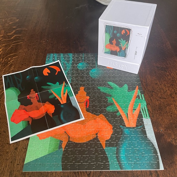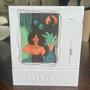 Jiggy “Reyna” 450 piece puzzle. Comes in reusable glass container and puzzle glue if you want to frame it.