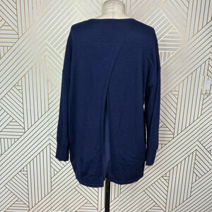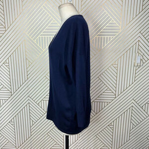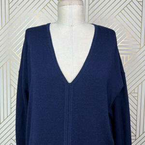 Jigsaw London Navy Blue Cross Back Silk Insert Wool Sweater Size Large