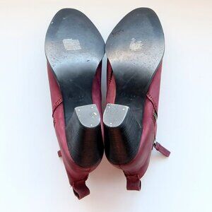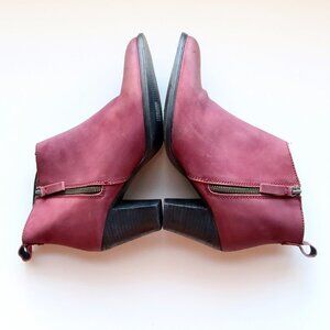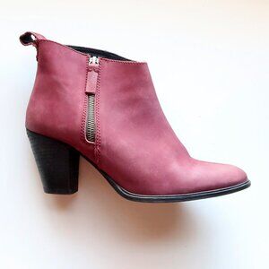 Jigsaw Maroon Nubuck Leather Block Heel Almond Toe Ankle Boots Booties Size 10.5