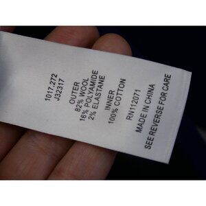Materials: 82% Wool, 16% Polyamide, 2% Elastane. Inner: 100% Cotton