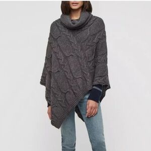 Jigsaw Women’s Cowl Neck Poncho. Made in Italy, Beautiful Dark Gray. Made of 40% Alpaca, 15% Virgin Wool, 45% Acrylic.