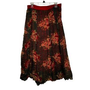 Jigsaw Skirt Women's Size 12 Gothic Vibtage Whimsygoth Floral Silk Maxi