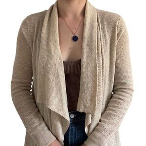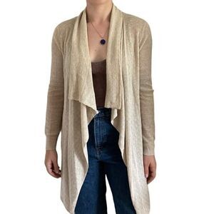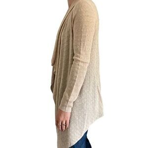 Jigsaw Womens Tan Beige Cashmere Blend Sheer Lace Knit Open Cardigan Sz M