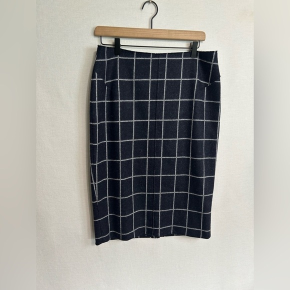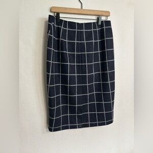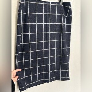 Jigsaw wool blend plaid navy midi skirt