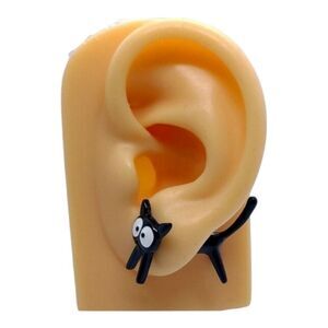 Jiji Black Cat Earrings Pierced Ear Jackets Big Eye Kitty Pet Sitter Cat Lady
