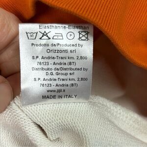 Jijil man collection Made in Italy Floral Orange Crewneck Sweater sz Medium Tropical Retro LuxeThis Jijil sweater showcases a bold artistic print in vibrant orange and yellow hues. The crew neck style features long sleeves and ribbed cuffs, making it a standout piece for any wardrobe. Its unique sheen adds a touch of elegance to the overall design.