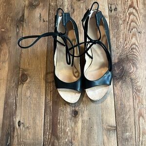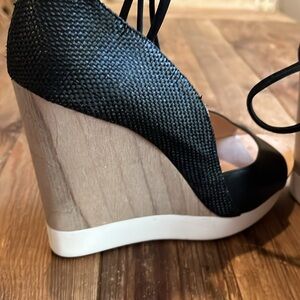 Jil Sander Black Ankle Tie Open Toe Wedge.