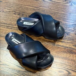 Jil Sander Black Crossover-strap Padded Leather Sandals Women's SZ 39