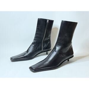 Jil Sander Black Leather Square Toe Kitten Heel Ankle Boots EU 36 US 6 $1530