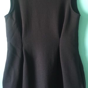 Easy yet classy black sleeveless dress. Hidden side pockets as pictured. Pin tucking details on front and back to highlight waist.