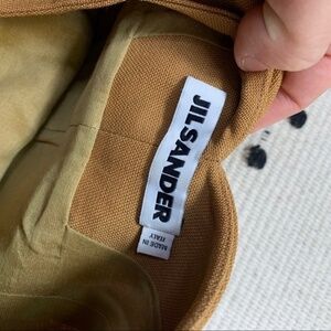 Jil Sander Camel Wool Blend Midi Shift Low Back Dress