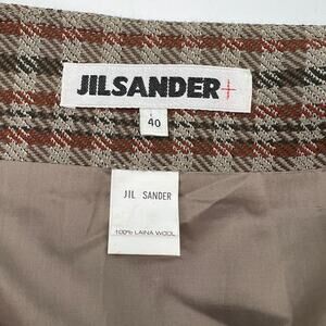Jil Sander Check Plaid Pencil Skirt Brown High Waisted Vintage Preppy