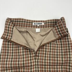 Jil Sander Check Plaid Pencil Skirt Brown High Waisted Wool Vintage
