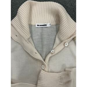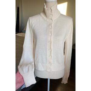 Jil Sander Cream Mock Neck Cardigan 100% Virgin Wool Italy Size 42 Med 6 $1060