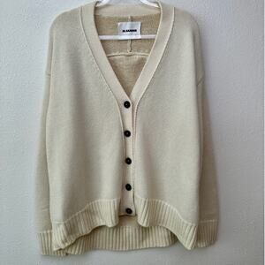 Jil Sander Cream V-Neck Button Long Sleeve Knit Sweater