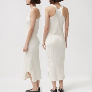 Jil Sander Midi Tank Dress Sleeveless Scoop Neck Racerback Cream Medium