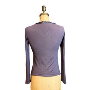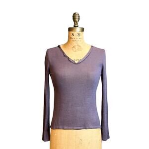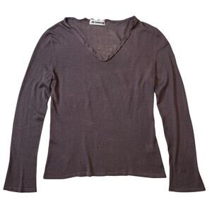 Minimalist and refined, this early-2000s Jil Sander top embodies the brand’s signature understated luxury. Crafted in Italy from sheer 100% silk knit in a muted eggplant hue, it drapes fluidly on the body with a softly contoured silhouette. Raw-edge V-neckline lends subtle texture and a modern touch. Mint condition, never worn.