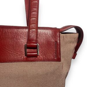 Jil Sander Shoulder Bag Red Leather & Canvas Tote Leather Lining w Keys No Lock